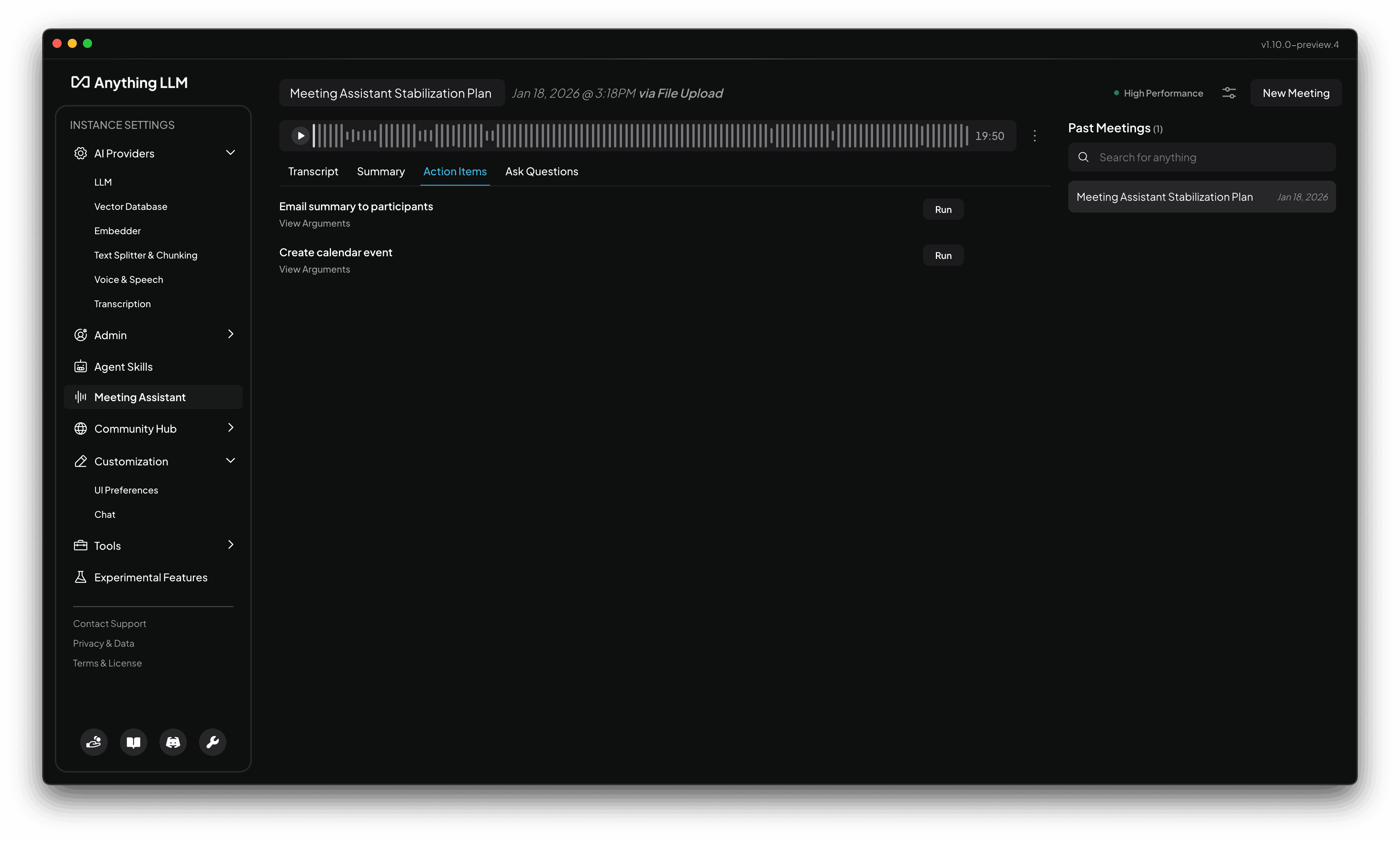 Every "Agent Skill", including MCPs, Agent Flows, and anything else you can use in AnythingLLM, is instantly available to the Meeting Assistant as a possible follow-up action.