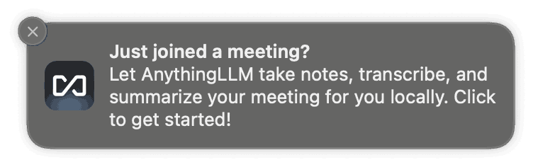 The Meeting Assistant is able to send you a desktop notification when you join a meeting. Clicking the notification will open the Meeting Assistant and start recording the meeting in the background.